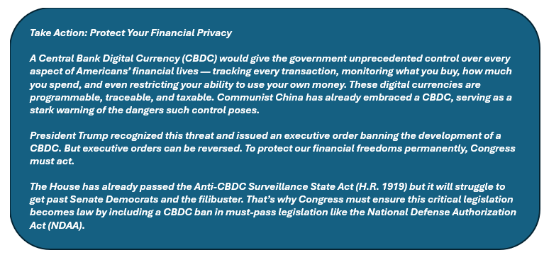 Urge your senators to include a ban on CBDCs in the NDAA